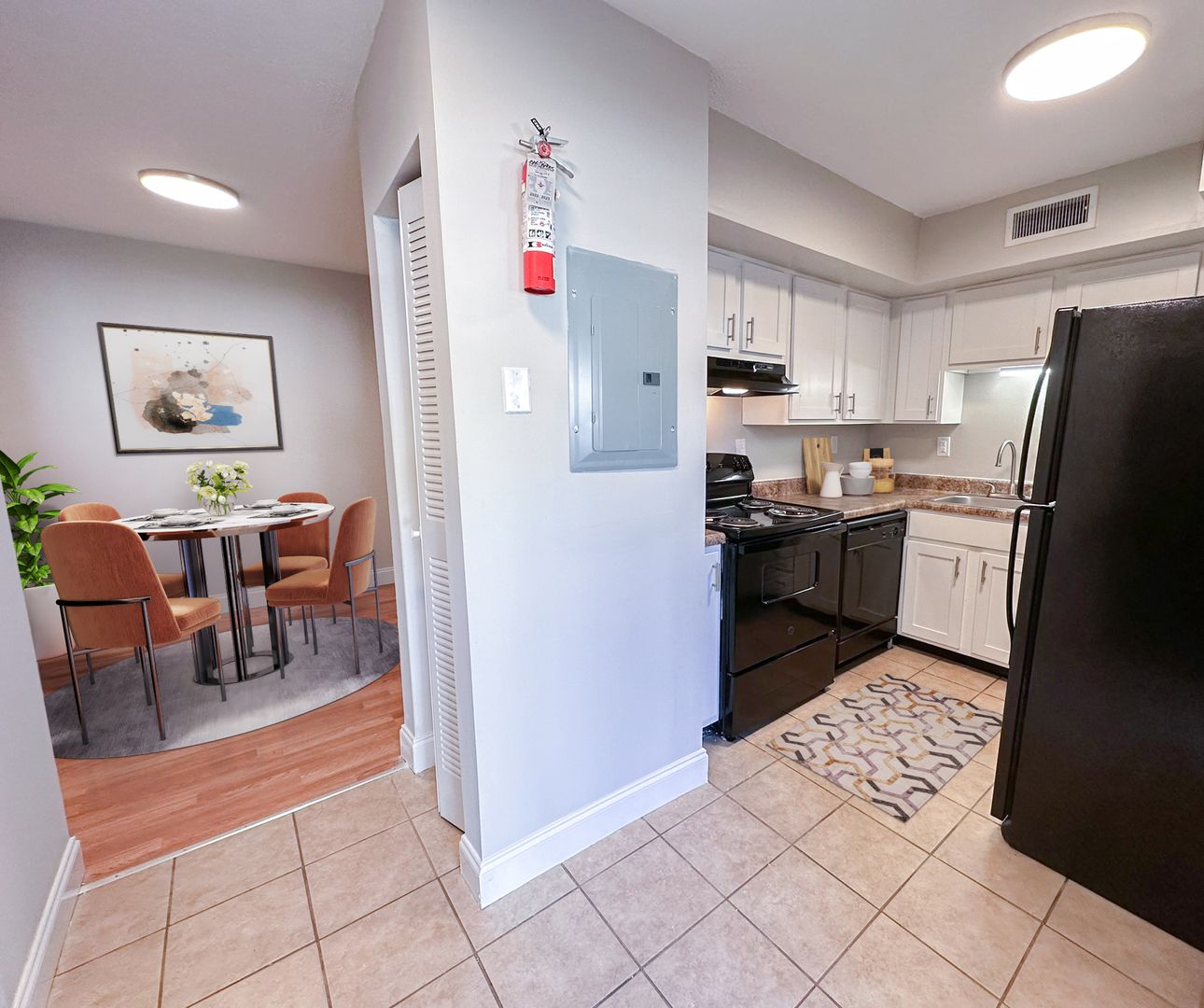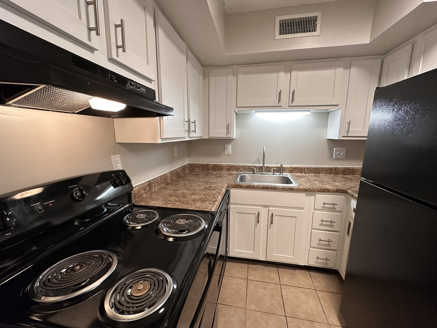 Each apartment is updated; however, countertop and flooring finishes may differ.