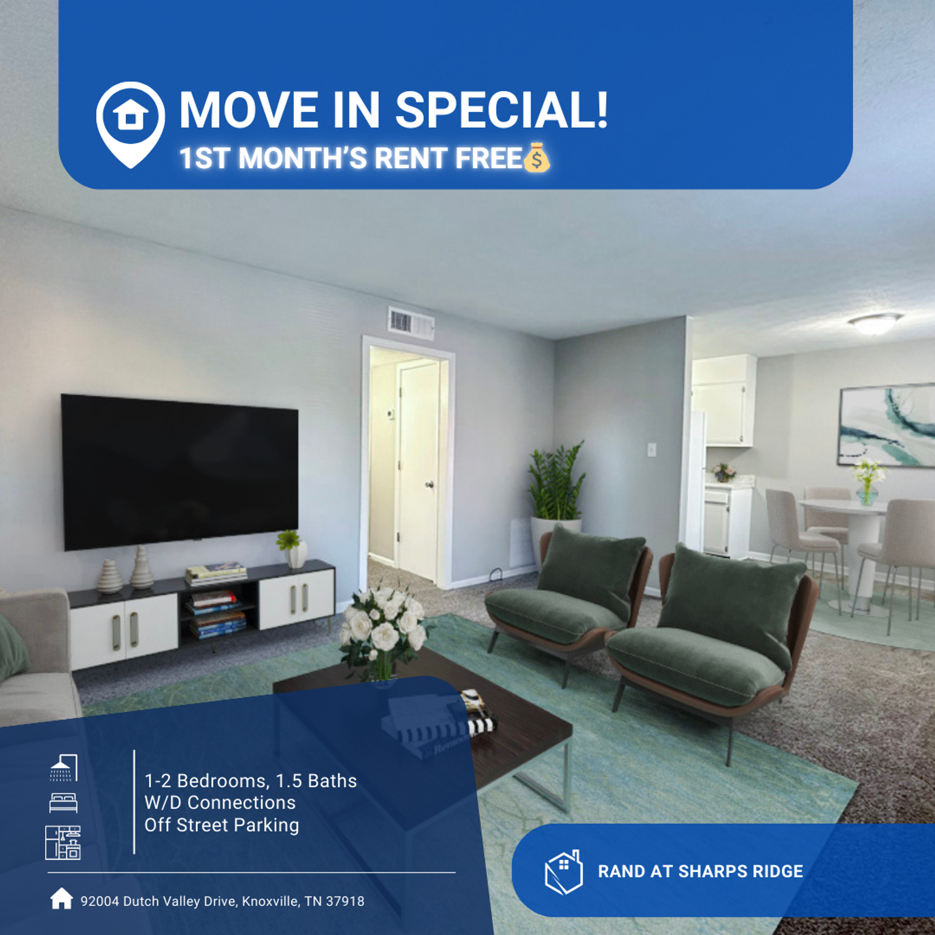 MOVE IN SPECIAL, ONE MONTH FREE RENT!