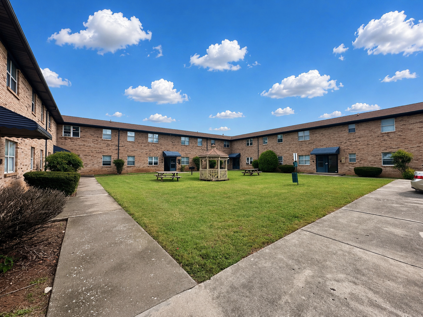 Relax on the center grassy quad at Heritage Court during beautiful days or take a stroll along the quiet street.
